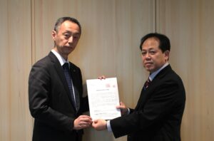 (左)春日交渉団長